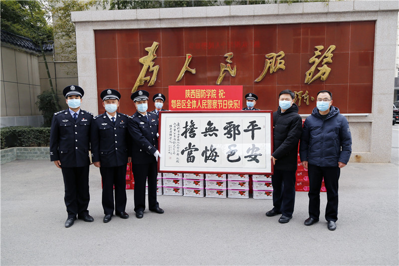 在第一个“中国人民警察节”到来之际,我校党委书记张卫平、副校长张永军及党政办公室、保卫处有关人员专程来到西安市鄠邑区公安分局,慰问辛勤协助学校安全工作的人民警察同志,并向他们致以节日问候和诚挚慰问。