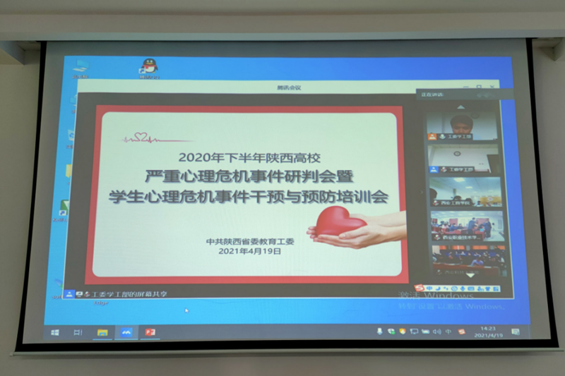 4月19日下午,陕西省委教工委主办的“2020年下半年全省高校严重心理危机实践研判会暨学生心理危机实践干预与预防培训会”通过视频会议形式召开,我校党委新利体育官方网站部,各分院书记、学生科长、心理辅导员、学校心理健康教育中心专兼职教师等32人在学校招就处宣讲厅参加会议。