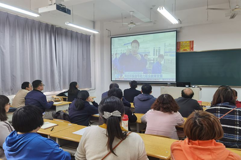 【党政机关党总支】4月12日至13日,全国职业教育大会在北京召开,习近平总书记发表重要指示,要加快构建现代职业教育体系,培养更多高素质技术技能人才、能工巧匠、大国工匠。为深入学习贯彻落实习近平总书记的重要指示精神和全国职业教育大会的决策部署,4月26日下午,我校党政机关党总支组织召开学习贯彻全国职业教育大会精神会议,党政机关党总支全体教职工参加此次会议,党总支书记殷兴光主持。会上,殷兴光传达了习近平总书记对职业教育工作作出的重要指示,全体与会教职工一同观看了2021年全国职业教育大会专题报道的系列视频。殷兴光表示:“习近平总书记对职业教育工作作出的重要指示高屋建瓴、意义深远,为新时代职业教育改革发展指明了方向,我们将深入学习贯彻落实习近平总书记的重要指示精神和全国职业教育大会的决策部署,进一步推进高水平职教建设。
