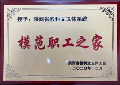 近日,陕西省教科文卫体工会召开了一届七次全委(扩大)会议,会议表彰了一批陕西省教科文卫体系统先进集体和先进个人,我校工会荣获“陕西省教科文卫体系统模范职工之家”荣誉称号、机械工程学院分会荣获“陕西省教科文卫体系统模范职工小家”荣誉称号、学校党委副书记杨聪等三位同志荣获优秀个人表彰。