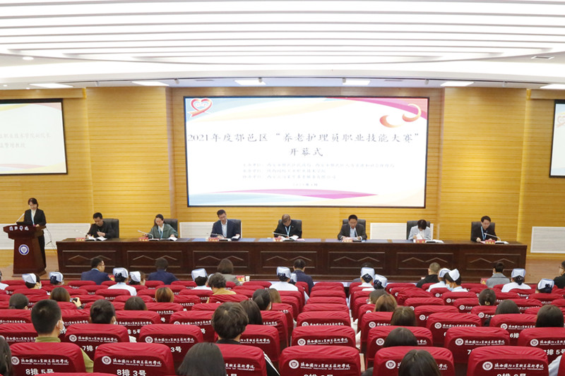 2021年4月27日,由西安市鄠邑区民政局和西安市鄠邑区人社局主办、18新利苹果客户端承办、西安滨河荣华养老服务有限公司协办的2021年度鄠邑区“养老护理员职业技能大赛”顺利举行。鄠邑区民政局局长郭长林,副局长郭碧,人力资源和社会保障局局长同旭辉,副局长陈美丽,18新利苹果客户端副院长孟繁增,校企合作处、继续教育与培训学院、经济管理学院相关负责人出席开闭幕式,参加开闭幕式的还有民政局相关工作人员、智慧健康养老服务与管理专业师生代表共80余人,会议由经济管理学院副院长王珊珊主持。