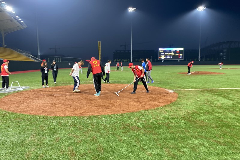 全体志愿者每天早晨6:30集合,于北校区图书馆前集中乘车前往赛场,当日夜场比赛结束后乘车返回学校休息。比赛现场,运动员们在场上挥汗如雨,候场区加油鼓舞声不绝于耳。掷球、挥棒、安打、触杀,清脆响亮的击打声此起彼伏,一记场内全垒打更是瞬间将赛场氛围引向高潮。场下志愿者则随时待命,场地助理、环境治理、观众服务、成绩编排、医疗保障、综合协调,81名志愿者分别服务于棒球项目竞赛委员会11个处室,其中过半数学生作为竞赛类志愿者直接服务现场比赛。在本次志愿服务工作中,我校全体志愿者积极弘扬“奉献、友爱、互助、进步”的志愿精神,展现了国防学子良好的精神风貌,志愿工作得到了竞赛委员会的高度评价。