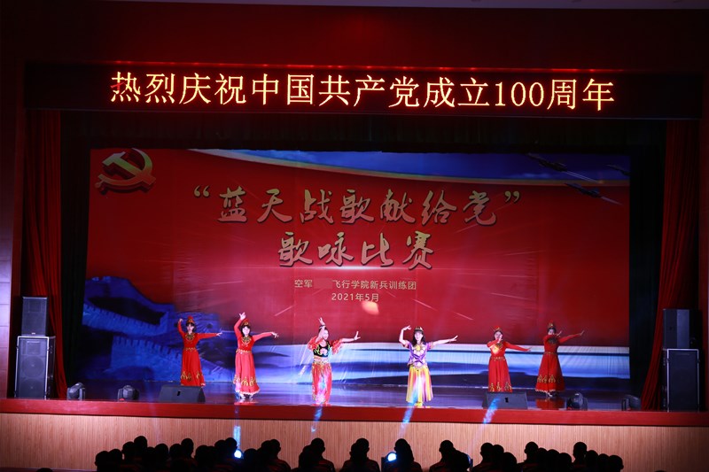 军民一家亲,浓浓鱼水情。为丰富鄠邑区驻地部队官兵精神文化生活。5月12日晚,由校团委老师带队的蒹葭汉文化协会、大艺团唯舞协会和部分新疆籍少数民族组成的演出分队赴空军某飞行学院,参与其新兵训练团举办的“蓝天战歌献给党”歌咏比赛串场表演,与该单位基层官兵共同庆祝中国共产党成立100周年华诞。