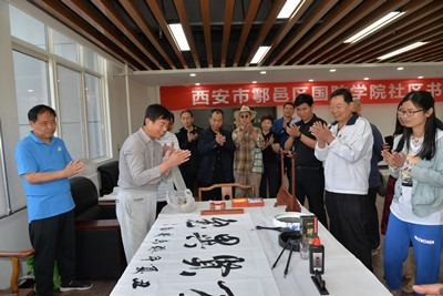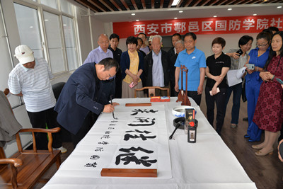 会上,余下街道副主任杨静妮宣读了《西安市鄠邑区余下街道陕西国防学院社区关于成立“国防书画协会”的决定》,并对社区书画协会的成立表示祝贺。随后,在所有与会人员热切的期待下,刘少阳和杨静妮为社区书画协会隆重揭牌。