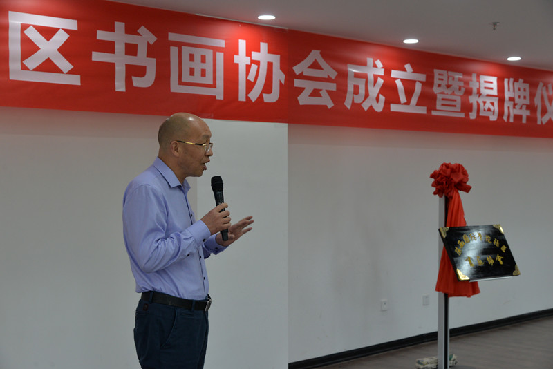 之后,刘少阳作讲话,他在讲话中谈到此次书画协会的成立正值今年建党一百周年的良好契机,得益于学院、余下街道、社区等各方面共同努力,才有了今天的成果,他对书画协会在提升文化自信方面的作用给予了充分肯定,还表示学院将充分调动各部门支持协会活动的开展。刘院长最后对书画协会成立送上了美好祝愿,对余下街道的大力支持表示感谢,同时期望协会一方面满足广大教职工和居民精神文化需求,未来还要突出学院教育特色,更多的发挥文化育人、服务社会的功能。