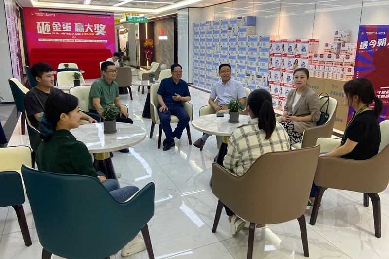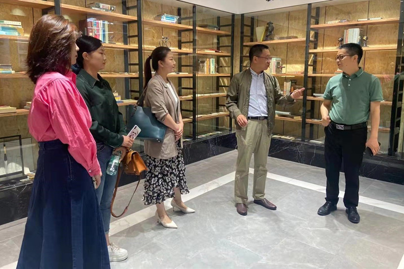 今朝装饰公司总经理吕绪维、副经理江凌峰一行现场陪同参观今朝公司的老房文化中心展厅和产品研发展示基地,并详细介绍了企业服务内容、研发产品及合作项目。