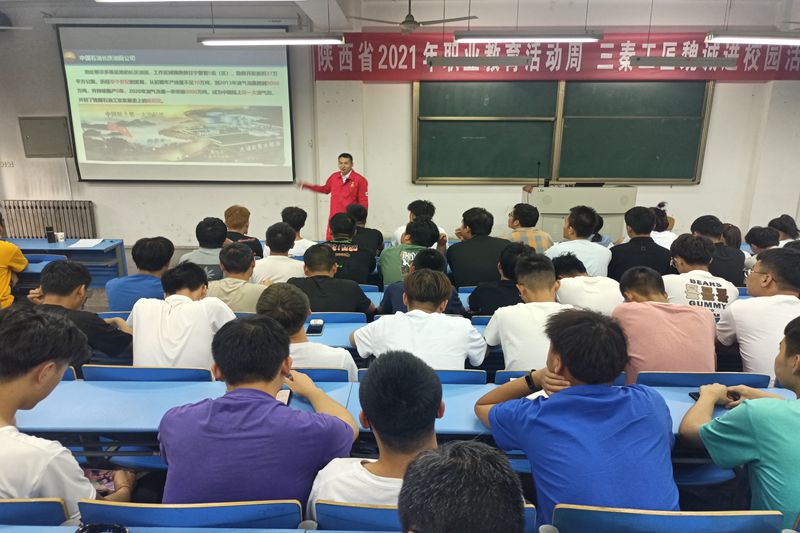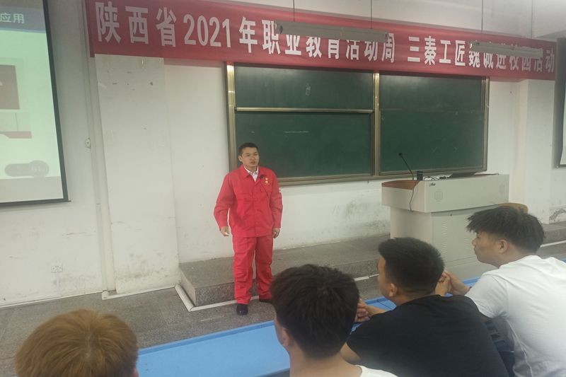 为大力弘扬劳动光荣、技能宝贵的时代新风尚,5月27日下午,由化学工程学院承办的“陕西省2021年职业教育活动周 三秦工匠魏诚进校园活动”在北校区3-129举行,邀请陕西省三秦工匠、陕西省五一劳动奖章获得者、中国石油天然气集团有限公司劳动模范、中国石油技能专家协会副主任魏诚为我校师生作了题为“弘扬劳模精神 践行工匠初心”的报告。200余名师生聆听了劳模的事迹报告并进行了座谈交流。