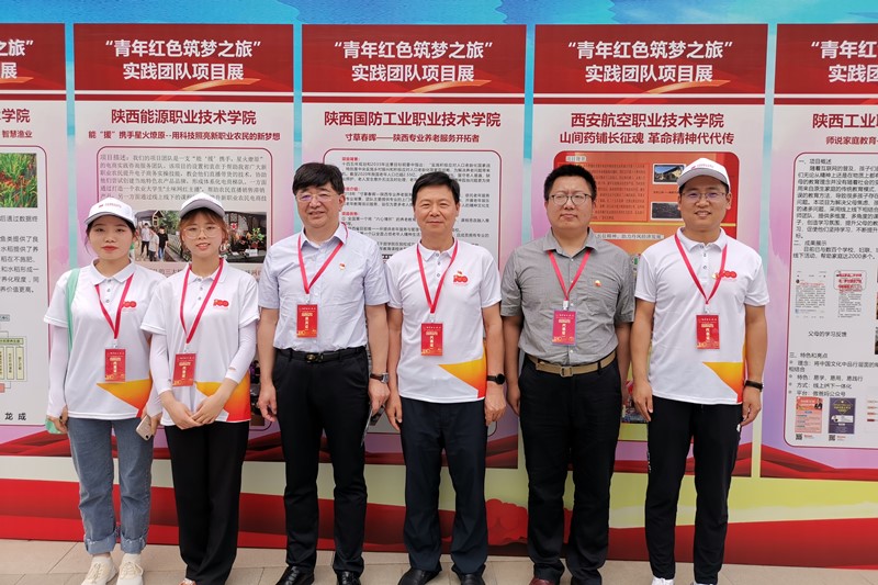 中共陕西省委教育工委委员、陕西省教育厅副厅长朱晓渭了解学校“青年红色筑梦之旅”活动开展情况并合影