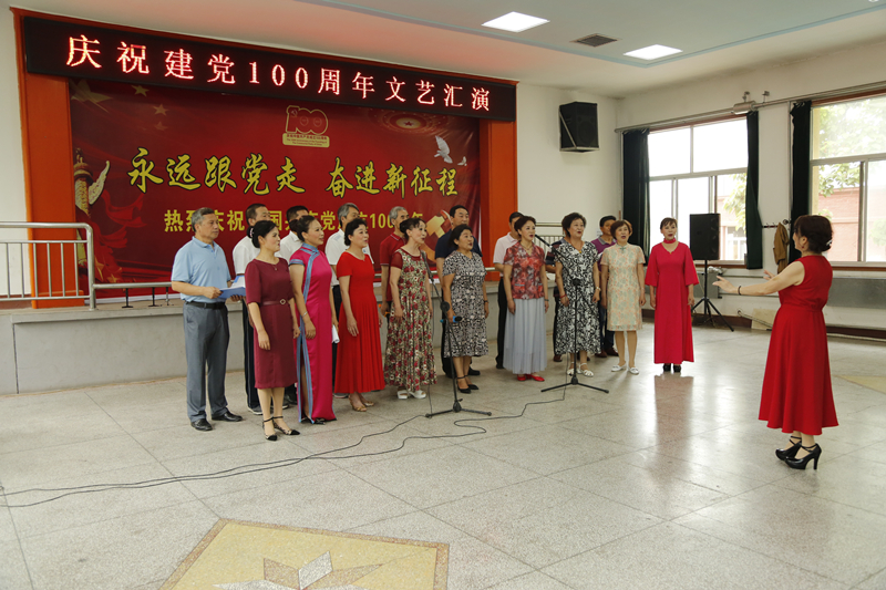 活动第二项进行了庆祝建党100周年文艺汇演,离退休党总支三个党支部的党员分别集体演唱了《没有共产党就没有新中国》《唱支山歌给党听》《歌唱祖国》《团结就是力量》等经典红色歌曲,此外,老同志们还表演了舞蹈、葫芦丝、旗袍秀和男女声小合唱等8个精彩的节目。
