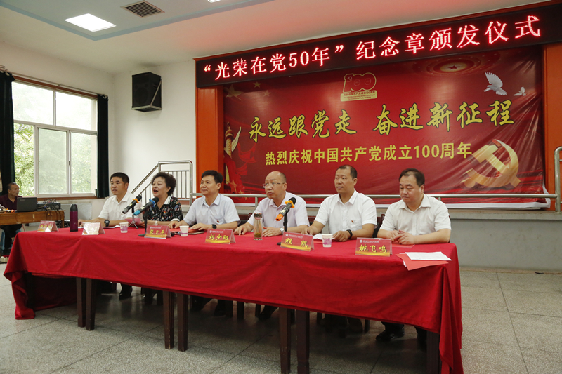 为庆祝中国共产党成立100周年,增强离退休党员荣誉感、归属感和使命感,弘扬爱国主义精神,讴歌实现中华民族伟大复兴中国梦的奋斗历程,2021年6月25日上午,离退休党总支在南校区文体活动中心隆重举行“光荣在党50年”纪念章颁发仪式暨庆祝建党100周年文艺汇演活动。校党委书记张卫平,副校长刘少阳,党政办公室、党委组织部、离退休离退休党员和演职人员,以及离退处全体工作人员等百余人参加了本次活动。