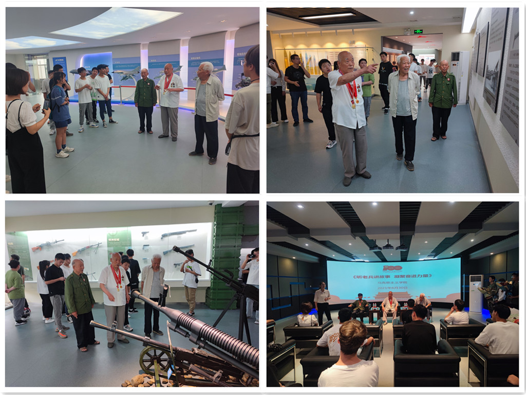 参观结束后,老战士们落座国防科技展馆报告大厅,逐一讲述了自己的亲身经历,与大家共忆峥嵘岁月,重温那段历史:从参军入伍讲到抗美援朝,从战场上的艰苦岁月讲到视死如归的报国情怀。最后,三位老战士对在场的青年学子提出了殷切的希望,勉励他们要听党话、感党恩、跟党走,坚定理想信念,抓住时代发展的大好机遇,不断锻造自己,传承红色精神,凝聚奋进力量,为实现中华民族伟大复兴的中国梦贡献一份力量。