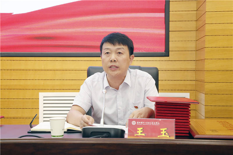 党委副书记、纪委书记王玉宣读学校党委《关于表彰2021年度先进党组织、优秀共产党员和优秀党务工作者的决定》
