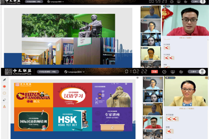 五洲汉风网络科技(北京)有限公司副总经理王锦红感谢我校对“中文+职业教育”以及此次国际中文直播课的高度重视和大力支持。她介绍了“中文联盟”课程云服务平台的慕课、微课资源,截止目前,中文联盟平台已有汉语学习、汉语考试、中国文化与当代国情、教师发展、中文+职业教育5大板块,220余门,7000多节视频课程。并鼓励学员们能通过此次课程提高中文水平、了解到更多中文方面的知识。