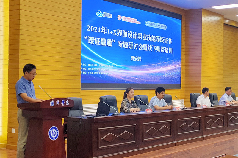 为深入贯彻《国家职业教育改革实施方案》精神,落实教育部《关于在院校实施“学历证书+若干职业技能等级证书”制度试点方案》要求,推动“1+X”证书制度试点工作的顺利开展和落实,提升试点院校教师实施教学、培训和评价的能力,助力职业院校艺术设计类专业建设与人才培养,7月26日上午,腾讯云“1+X”界面设计职业技能等级证书师资培训班在我校教四报告厅顺利开班。
