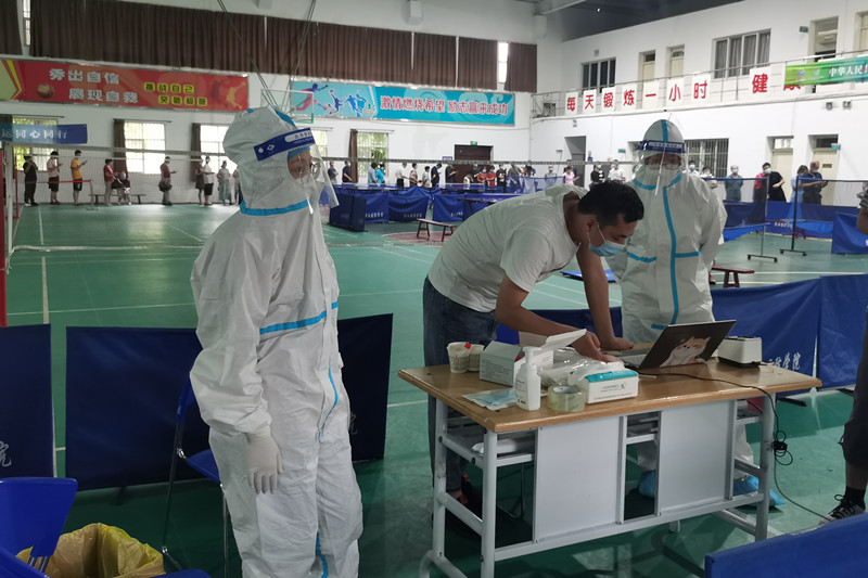 为有效阻断新冠病毒传播扩散,保障全校师生生命安全和身体健康,8月12日,我校在北区大学生活动中心为北区教职员工及家属做核酸检测。核酸检测现场,教职员工及家属佩戴口罩,间隔1米,耐心等待核酸检测,现场秩序井然。