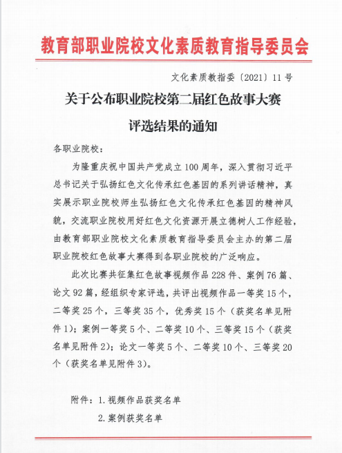 近日,教育部职业院校文化素质教育指导委员会公布第二届红色故事大赛评选结果,我校报送的红色故事视频作品《把一切献给党》荣获大赛三等奖。