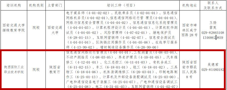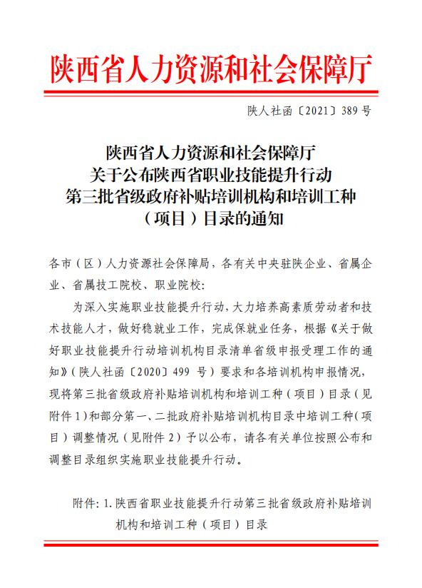 近日,陕西省人力资源和社会保障厅公布了陕西省职业技能提升行动第三批省级政府补贴培训机构和培训工种(项目)目录,我校申报备案的17个工种成功获批,标志着我校可面向企业职工开展政府补贴培训项目。