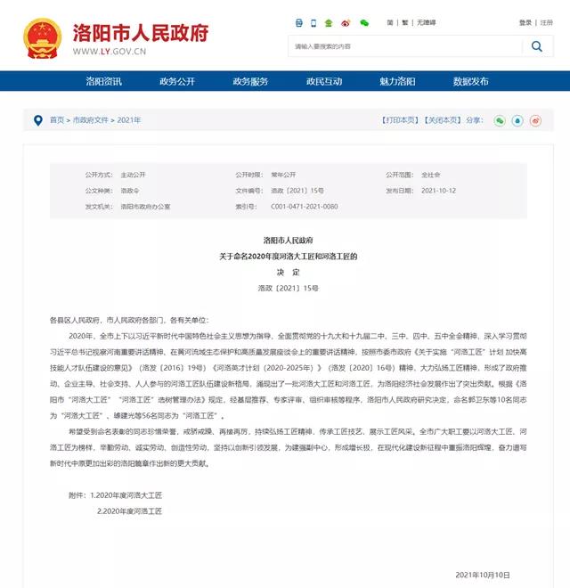 近年来,洛阳市大力弘扬工匠精神,形成了政府推动、企业主导、社会支持、人人参与的河洛工匠队伍建设新格局,涌现出了一批河洛大工匠和河洛工匠,为洛阳经济社会发展作出了突出贡献。根据《洛阳市“河洛大工匠”“河洛工匠”选树管理办法》规定,经基层推荐、专家评审、组织审核等程序,洛阳市人民政府研究决定命名我校校友李鹏辉同志为2020年度“河洛工匠”。