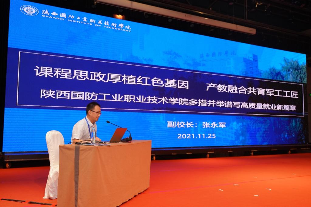 张永军副校长代表学校作了《课程思政厚植红色基因,产教融合共育军工工匠》的高职院校就业竞争力主题发言。发言分为“构建大思政育人格局 培养红色军工传人”“产教融合共助军工发展,校企合作共育军工工匠”“多措并举、持续发力,推进毕业生高质量充分就业”三部分。
