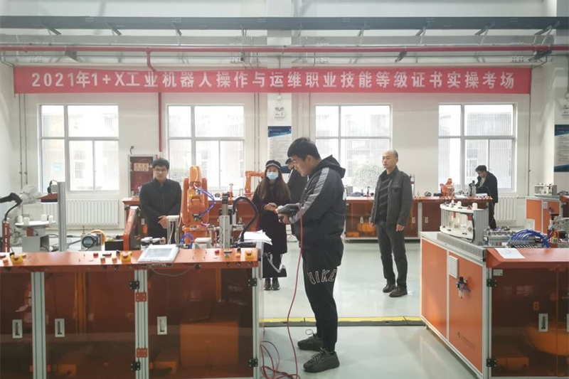 1+X职业技能等级证书试点工作是在鼓励学生获得学历证书的同时,积极取得职业技能等级证书,提高人才培养质量。在教务处等部门的支持下,智能制造学院高度重视此次考证工作,院长李俊涛多次主持召开了培训及考证研讨会,在为期1个月的证书培训工作中,培训学生对工业机器人技术和1+X证书有了全面了解,并且增强了教师自觉将1+X证书内容融入人才培训方案的意识。此次考试能够严格按照考核管理规定部署考务相关工作,考试过程纪律严明、平台运行稳定,考证工作顺利圆满。