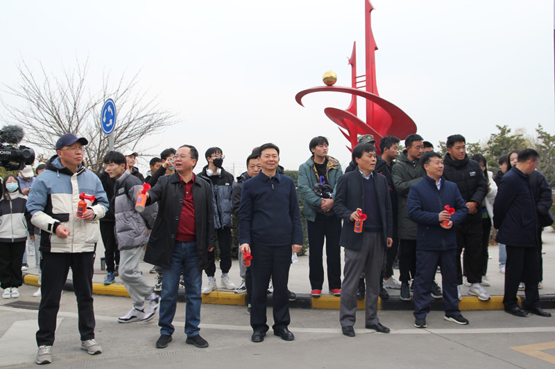 校党委书记张卫平,校长刘敏涵,党委副书记杨聪、党委副书记、纪委书记王玉,副校长刘少阳五位领导集体为本次比赛发令。
