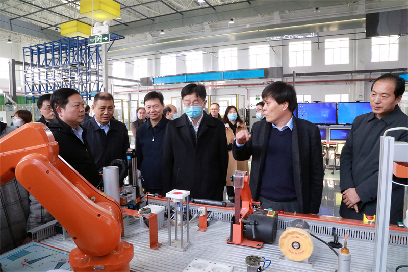 12月9日下午,鄠邑区委书记范九利,区委常委、组织部部长孔维龙,区政府副区长毛安带领区委办公室、区委组织部、区教科局、区发改委等单位负责同志一行9人到我校调研。我校党委书记张卫平、校长刘敏涵、副校长张永军以及智能制造学院、化学工程学院、组织部、宣传部、党政办公室等部门相关负责人陪同调研。