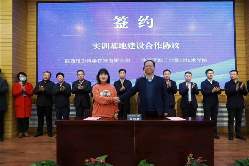 陕西珞珈科学仪器有限公司总经理刘晓、18新利苹果客户端党委副书记杨聪签订实训基地建设合作协议