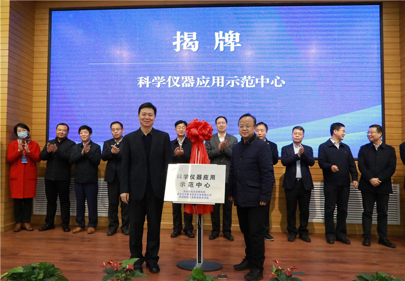 西安近代化学研究所党委书记何文卿与18新利苹果客户端党委书记张卫平为科学仪器应用示范中心揭牌