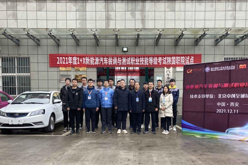 "1+X”新能源汽车装调与测试职业技能等级证书试点考核内容设有“高压系统检测与验证”和“底盘系统装调与测试”两个模块。本次考评聘请北京卓创至诚技术有限公司、陕西交通职业技术学院的6名通过师资认证的企业代表和教师担任考评员,严格按照职业教育评价组织——北京卓创至诚技术有限公司的考评指南来实施。