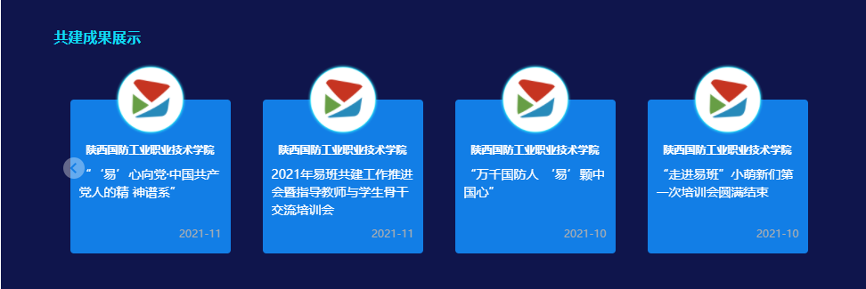 10月,我校易班发展中心主要围绕易班建设工作、网络思政主题活动两大方面展开,针对易班发展中心新成员举办内部培训会;针对各分院二级指导教师及学生管理员举办易班共建工作推进会;为提高我校学生思想政治建设,特举办“万千国防人‘易’颗中国心”、“‘易’心向党—中国共产党人的精神谱系”特色系列主题活动,进一步深入学生,引导学生,提高学生的思想政治意识,陕西国防学院易班发展中心正在广大师生中稳扎脚步、快速发展。