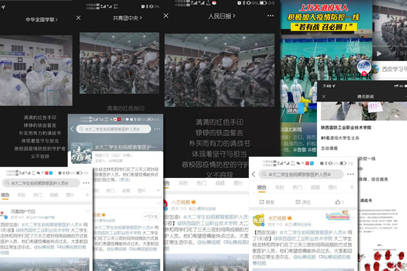 近日,我校艺术与设计学院数字媒体创新服务中心学生摄制《众志成城共克时艰》原创视频被人民日报官微、中华全国学联,中国青年网,湖北新闻,鄠邑融媒,纵横视频、凤凰网、光芒视频,三秦青年、陕西青年志愿者等数十家新媒体官方大V相继转发,浏览量过千万,获得社会广泛关注与好评。