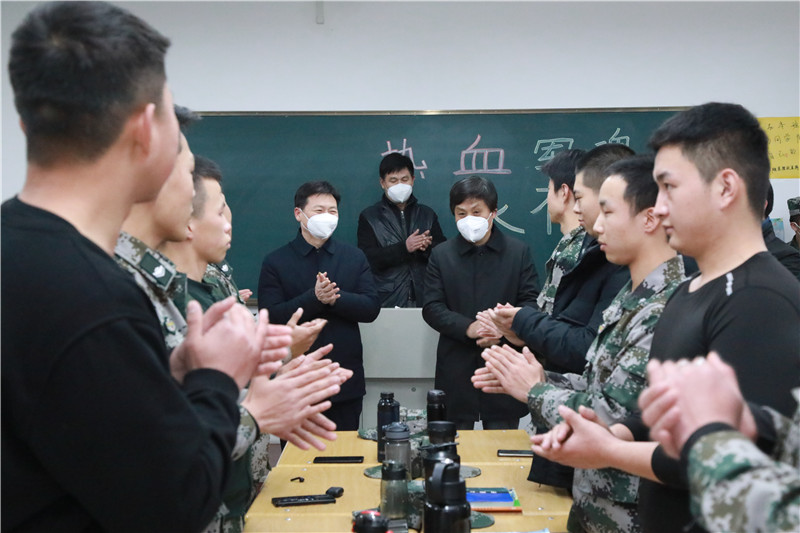 校领导还专程慰问了为在疫情防控工作做出突出贡献的军魂学社学子,肯定他们的工作,对他们的辛勤付出表示感谢,并鼓励他们继续保持军人本色,在学习和各个方面展现退役军人优良作风。