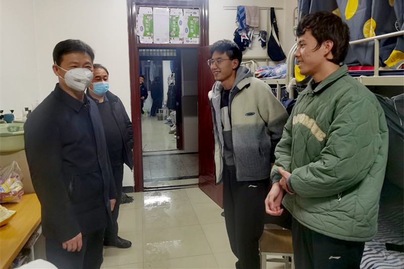张卫平与学生深入谈心谈话,了解封闭管理期间学生生活学习问题,给学生送去了新年祝福,鼓励学生在封闭管理期间做好学习、生活、锻炼,凝聚同心力量,筑牢战疫防线。