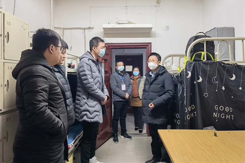 为进一步做好元旦假期疫情防控工作,学校专题召开会议安排部署有关工作,并要求将思想政治工作与疫情防控工作同部署、同落实,拿出行之有效的措施和办法,关心学生学习和生活,做好服务和保障,确保师生生命健康和校园安全稳定。在元旦佳节即将到来之际,2021年12月31晚,校党委书记张卫平、校长刘敏涵带领领导班子成员、有关职能部门和二级学院负责人以及全体辅导员,深入学生公寓开展走访慰问,了解学生学习、生活情况,送去学校的亲切问候。
