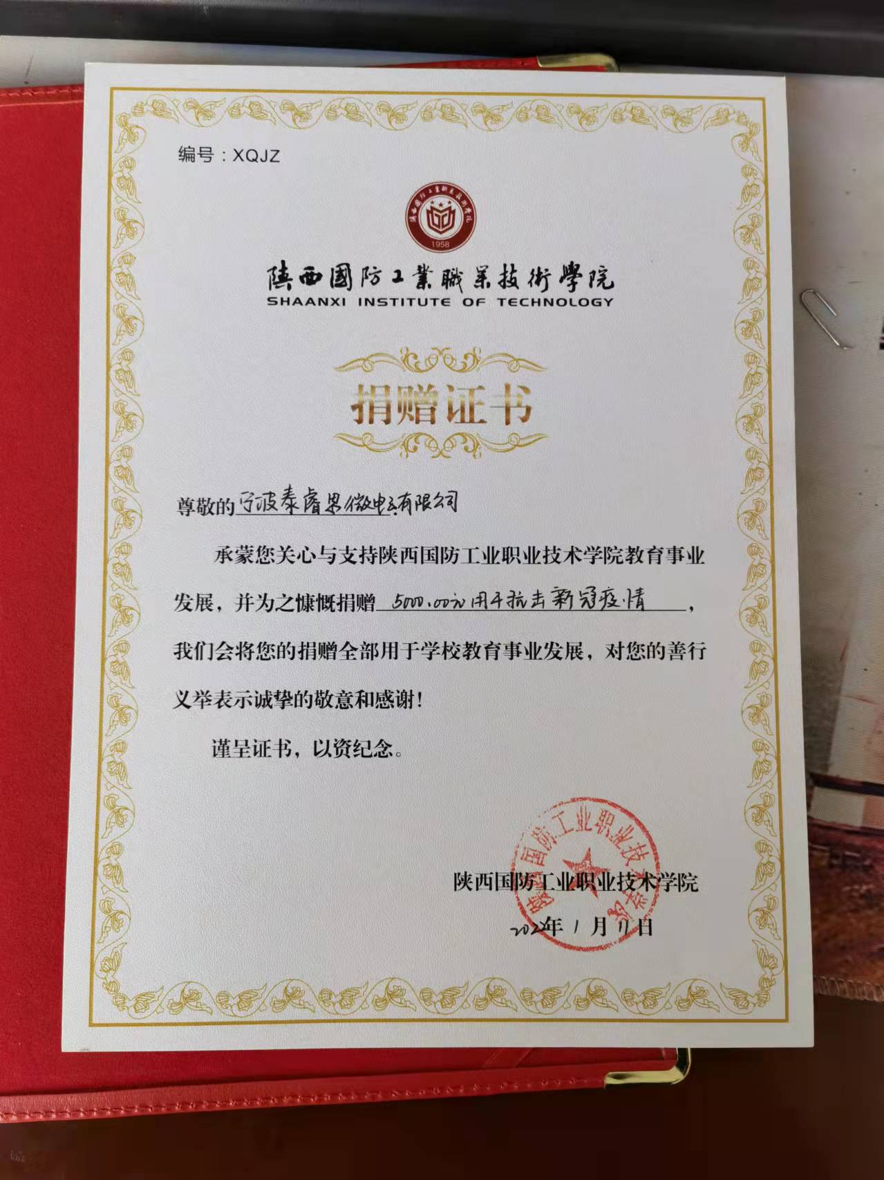 病毒无情,人间有爱。爱心企业的捐赠,极大改善学校疫情防控工作条件,让战斗在疫情一线的学校教职员工感受社会大家庭的温暖,坚定抗击疫情必胜信心和勇气,助力学校疫情防控取得胜利。宁波泰睿思微电子有限公司的爱心捐赠,不仅体现了疫情面前企业的责任担当,也体现了社会各界对教育事业的信任和支持,为进一步深化校企合作奠定了基础。我们将会传递这份爱心,携手抗疫,同舟共济,共克时艰!