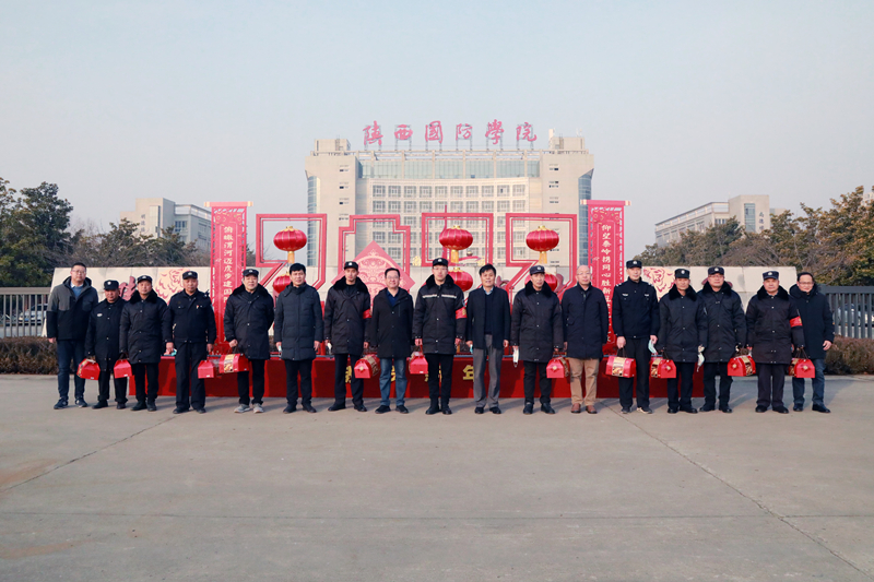 2月1日大年初一上午,校长刘敏涵,党委副书记杨聪,副校长刘少阳等校领导带队走访慰问了春节期间坚守在工作岗位值班员工,向他们致以新春佳节的慰问,并为他们送去新春祝福和慰问品。党政办、工会、学工部、后勤处、保卫处、医务所、疫情防控办公室等部门负责同志陪同慰问。