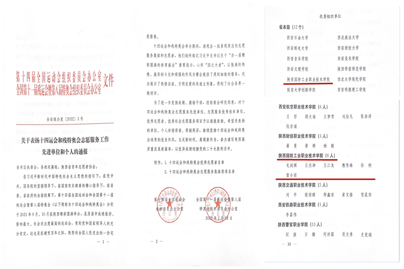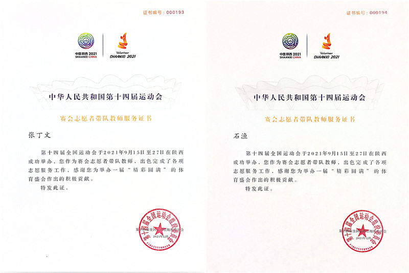 近日,第十四届全国运动会组织委员办公室及全国第十一届残运会暨第八届特奥会组织委员办公室下发文件,对在十四运会和残特奥会举办期间,表现突出的志愿服务先进单位、志愿服务优秀组织单位、优秀志愿者、优秀社会志愿服务项目予以通报表扬。我校荣获十四运会和残特奥会志愿服务优秀组织单位;6名赛会志愿者被评为十四运会和残特奥会优秀志愿者;为4名教师颁发赛会志愿者带队教师服务证书。
