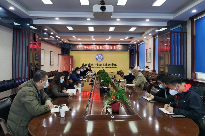 会上党委宣传部负责人张鹏汇报了2022年校园文化建设提升工作方案,与会人员围绕校园人文景观建设、校园环境美化以及校园文化建设存在的问题等内容进行了讨论。