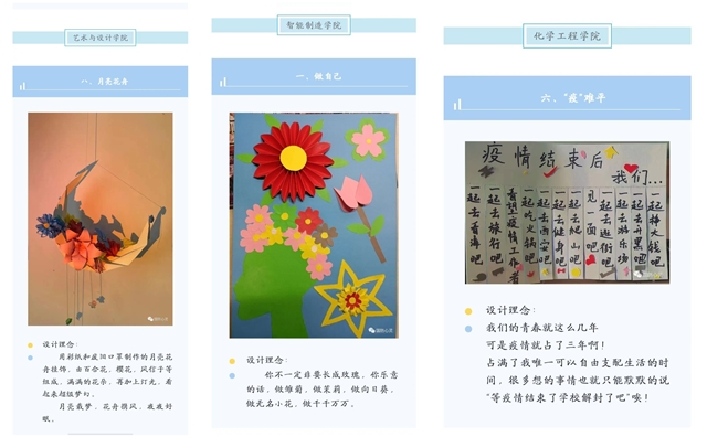 虽不能欢聚一堂,但借助网络平台,同学们依旧兴致勃勃,剪出满意的作品。活动结束后,同学们都纷纷表示这次活动很有意义,不仅丰富了自己的业余生活,也缓解了疫情下的焦虑情绪。之后学工部也将继续开展丰富多彩的活动,不断丰富学生的在校生活。