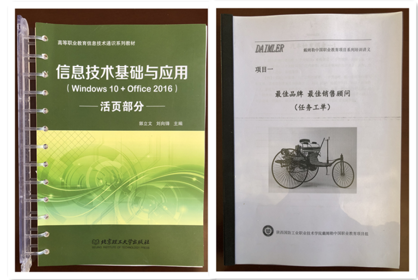 ——双管齐下,新型教材培育初见成效。学校在整合模块化课程体系的基础上,对标职业技能等级标准,依托国防职教集团、中国航天科技教育联盟等,加强校企联合研发教材。整合戴姆勒、FANUC、兵器工业212所等最新技术工艺,重序知识结构,精选教学内容,推动开发项目化、立体化的工作手册、活页式教材和双语教材,2020年建成《信息技术基础与应用》《戴姆勒中国职业教育项目系列培训讲义》等5部新型教材、2部双语教材,打造了一批更加符合现代化、国际化职业教育要求的优质教材。