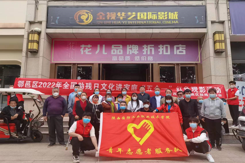 5月13日下午,在第32个“全国助残日”来临之际,校团委师生志愿者参加鄠邑区肢残人协会举办的2022年全国助残日文化进家庭“五个一”红色观影活动。