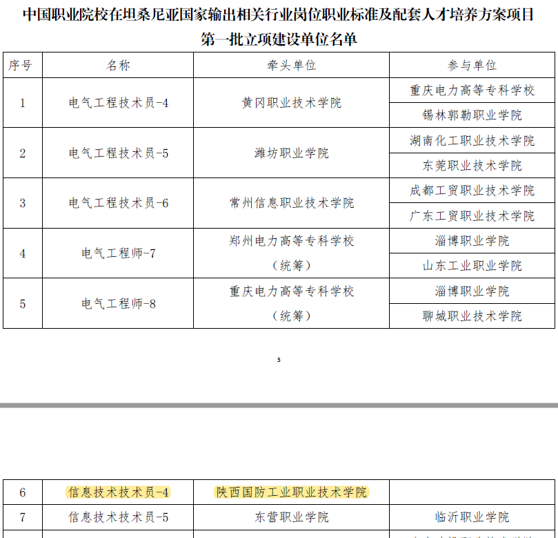 6月2日,中非职业教育联盟公布《关于遴选中国职业院校关于公布中国职业院校在坦桑尼亚国家输出相关行业岗位职业标准及配套人才培养方案项目第一批立项建设单位的通知》(中非职教函【2022】7号)。继5月29日答辩之后,经专家评审,我校申报的信息技术技术员NTA-4、汽车工程技术员NTA-4项目成功立项。