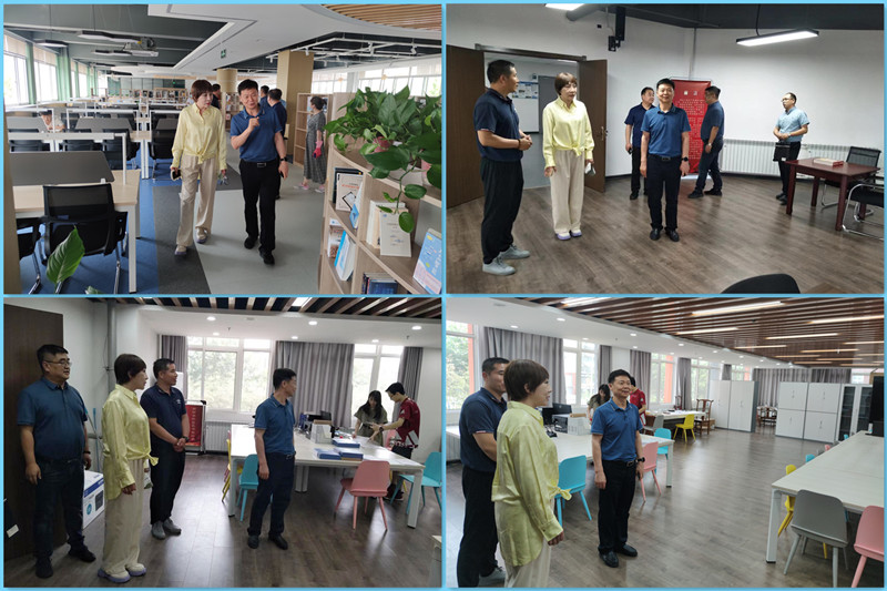 董侠一行前往博逸楼二楼老年综合活动室、书画培训室和舞蹈室等离退休教职工活动场所调研指导。离退处负责人现场汇报了相关场所的功能和使用情况,以及博逸楼三、四层配套的医务室、智慧健康养老实训基地等为老服务设施情况。