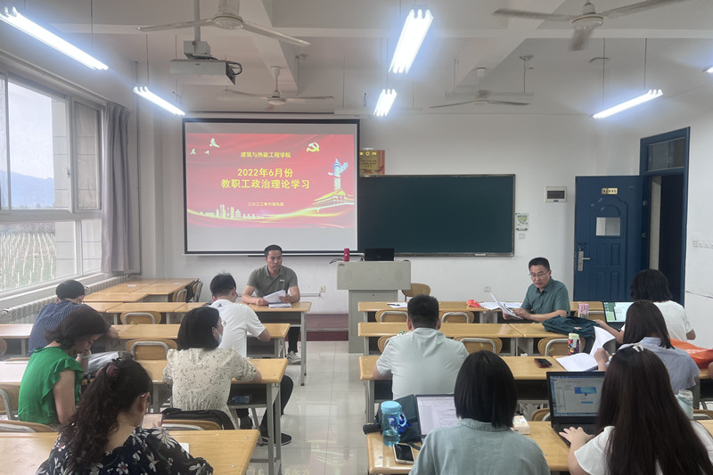 【建筑与热能学院党总支】按照陕国职党宣〔2022〕19号文件《关于2022年6月教职工政治理论学习安排的通知》要求,建筑与热能工程学院于2022年6月9日下午在教4-340召开了本月教职工政治理论学习会议。党总支书记强卫印主持会议,全体教职工参加会议。