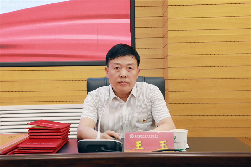 党委副书记、纪委书记王玉宣读学校党委《关于表彰2021年度先进党组织、优秀共产党员和优秀党务工作者的决定》
