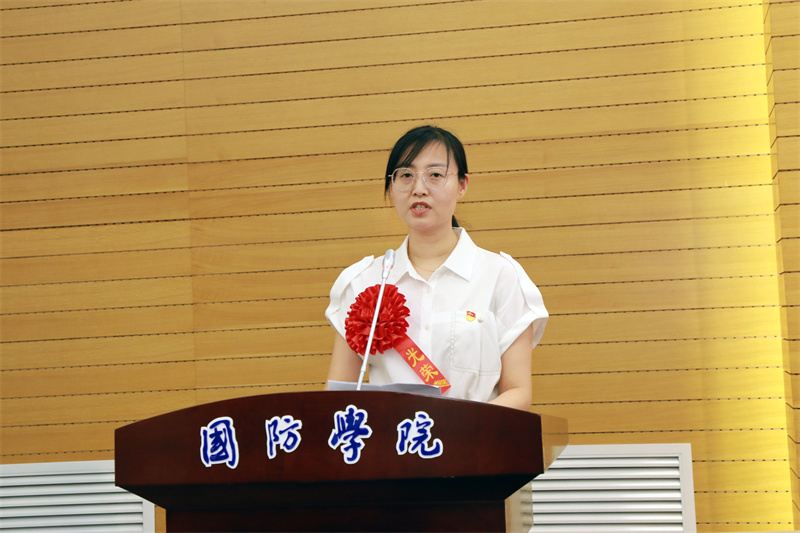 电子信息学院党总支书记赵鹏同志代表受表彰的先进党组织发言,基础课党总支张琳娜同志代表受表彰的优秀共产党员。他们表示将不辜负党的期望和培养,以更加饱满的热情,开拓创新、勇于担当,努力为学校“双高建设”奋发进取,为党的教育事业奉献力量。