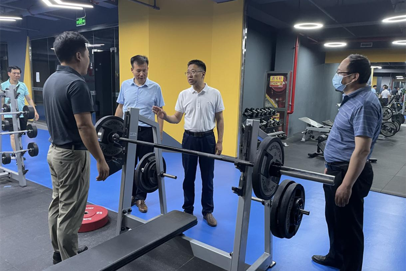 首先,孟繁增一行调研了西安外国语大学健身房,参观了健身房的场地规划及各功能区设置情况,详细了解健身房的运营模式,健身教学项目开展及学生的参与程度等关心的问题。