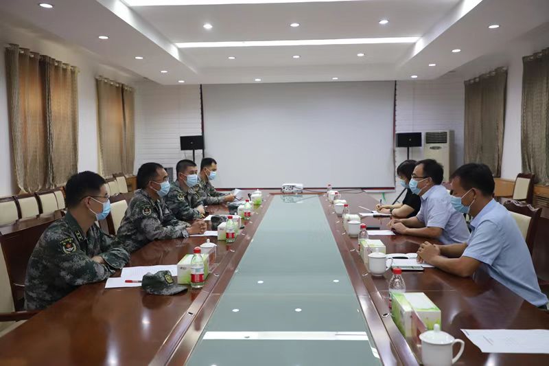为强化军民共建,促进共同发展,积极筹备新学期军训等工作。在中国人民解放军建军95周年来临之际,7月27日上午,学校副校长张永军、军事体育部教师一行5人赴承训部队走访慰问,并代表学校为部队官兵们送去了慰问品,向他们致以节日问候,部队政委段杰辉、副参谋长付磊、丰尚东、管理科科长张海波热情接待了张永军一行。