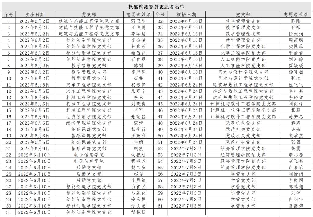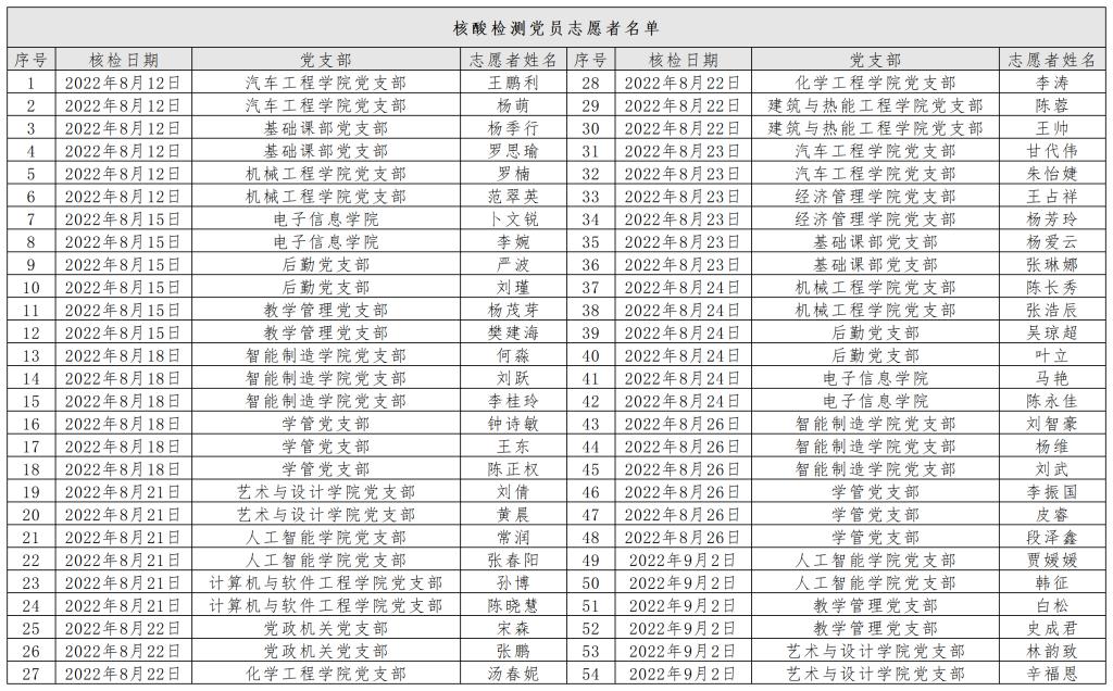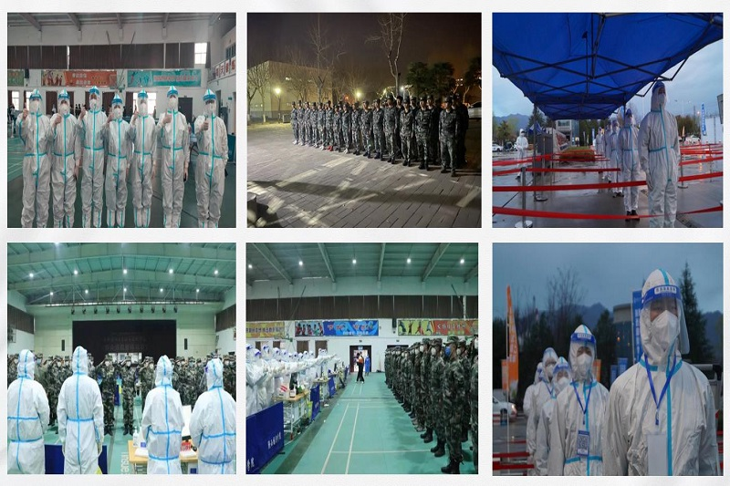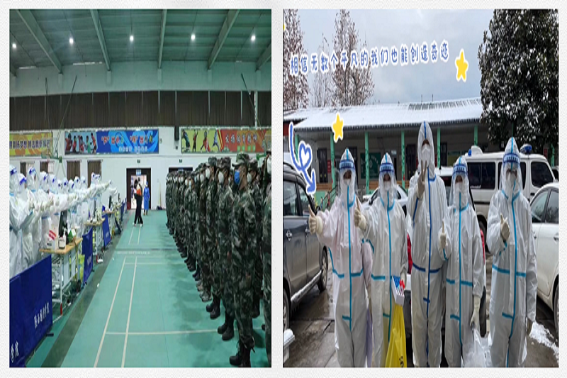 无论早晚,只要接到鄠邑区关于全员核酸检测通知,各部门志愿者与医护人员迅速到位,穿着密不透风的防护服或隔离服,支援采样任务。自6月起,他们共参与支援核酸检测工作30余次,共计检测160000余人次,衣服被汗水浸透,双手被手套捂得发胀,但依然在防疫的第一线上,为校园疫情防控安全全力以赴。