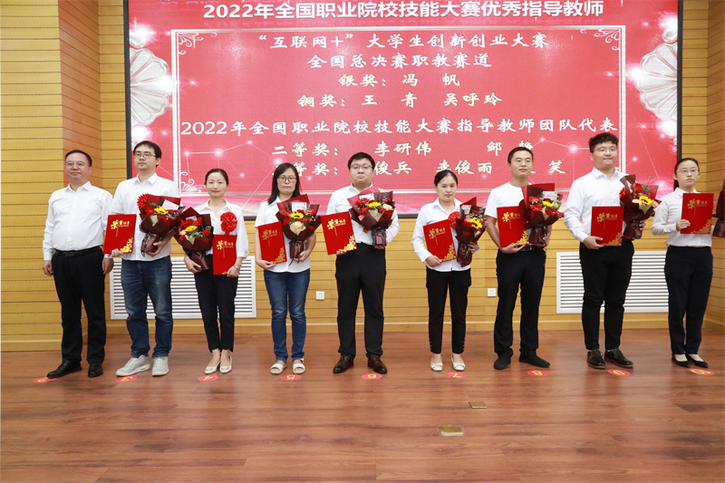 党委副书记杨聪为第七届中国国际“互联网+”大赛国赛、2022年全国职业院校技能大赛国赛项目优秀指导教师颁奖